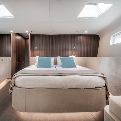 Thanks to our modular construction, the layout can be adapted cost-free to the owner’s wishes. For example, the forward and aft living areas can be divided below deck, or the number of guest cabins can be chosen (up to 4).
