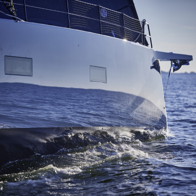 Utilizando fibra de carbono y materiales construcción ligeros en el interior, los yates YYACHTS consiguen una alta relación de desplazamiento/superfície vélica.